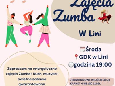 ❗𝙕𝙪𝙢𝙗𝙖 𝙬 𝙂𝘿𝙆!❗ Zapraszamy na zajęcia Zumby, które odbywają się co środę w Gminnym Domu Kultury w Lini. Szczegóły na plakacie!